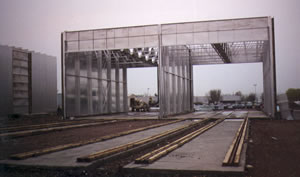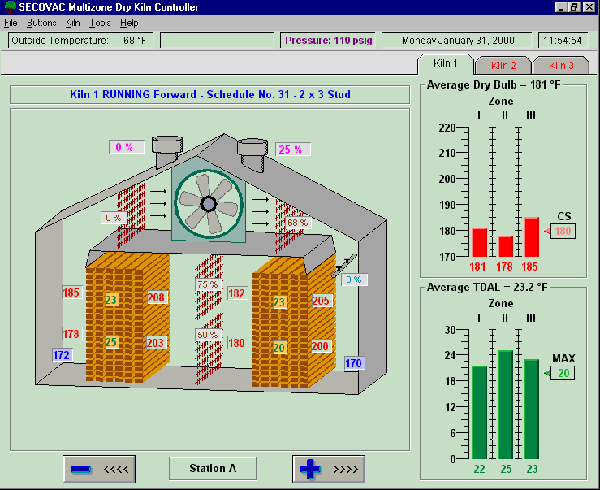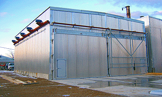 Track Kilns and High-Temp Pine KilnsGeneral capabilities Track kilns are designed to speed the loading/unloading operations. This helps to increase the time that your kiln has lumber in the drying process. Track kilns are generally designed to accommodate large quantities of lumber and are especially popular for softwood producers. Our hardwood track kilns can be offered in "Center Fan Wall" design where fans and primary heat is between the tracks, with reheat above the false ceiling. Features - Either aluminum or steel structure, depending on the application - Aluminum or Stainless Steel interiors - Smithco 72” fans with Class H motors or remote-mounted motors - Fired with direct fired burning system or high pressure steam - Available in single or double track design - Secovac multi-zone controls with Accu-stop technology